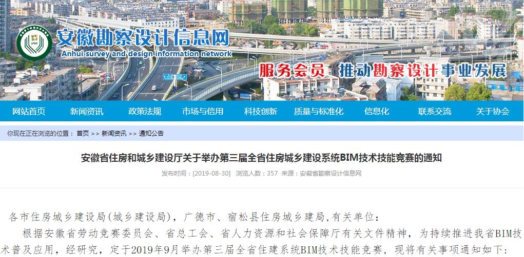 近日,安徽省將BIM技術提上日程,定于9月舉辦第三屆全省住房城鄉建設系統BIM技術技能競賽!