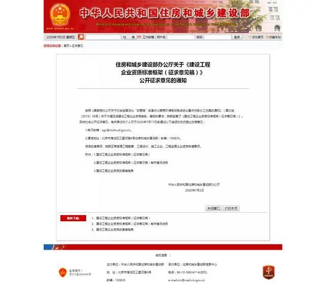 2020年7月2日住建部公布企業資質改革征求意見