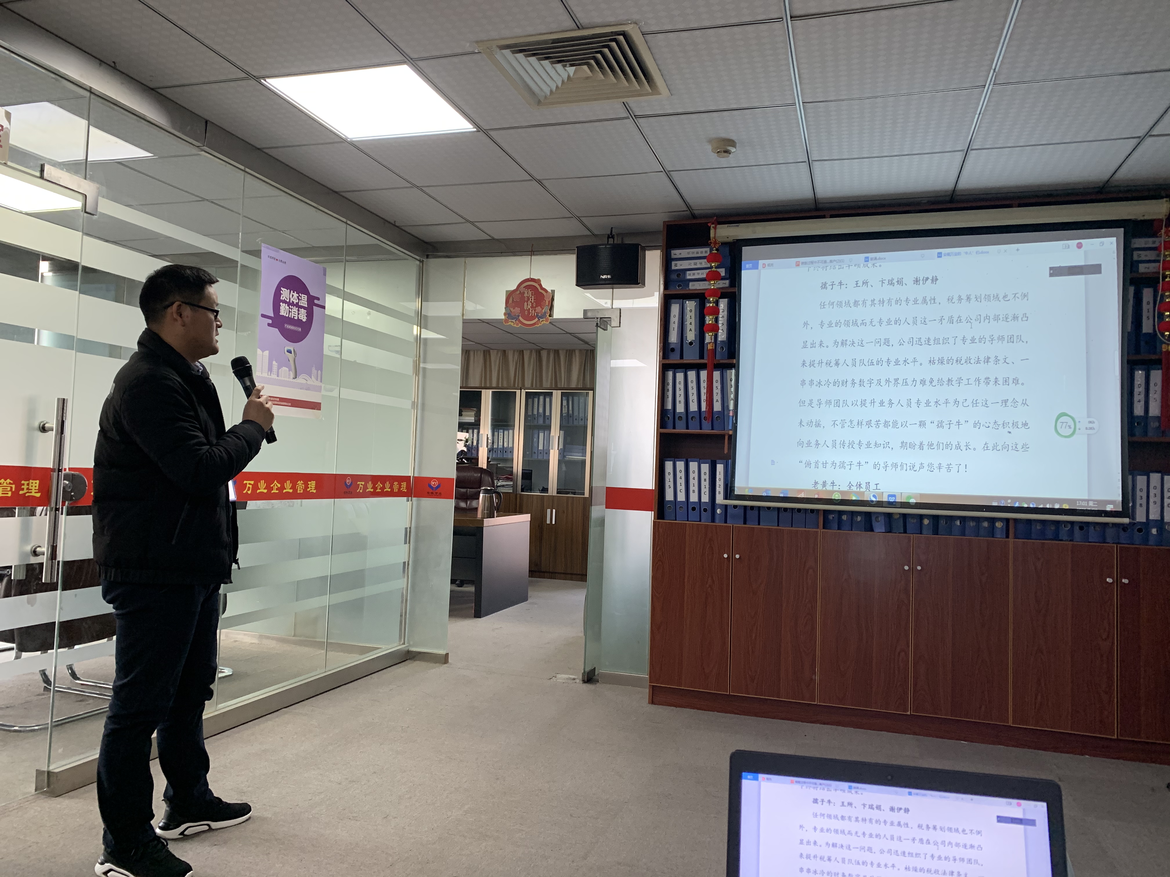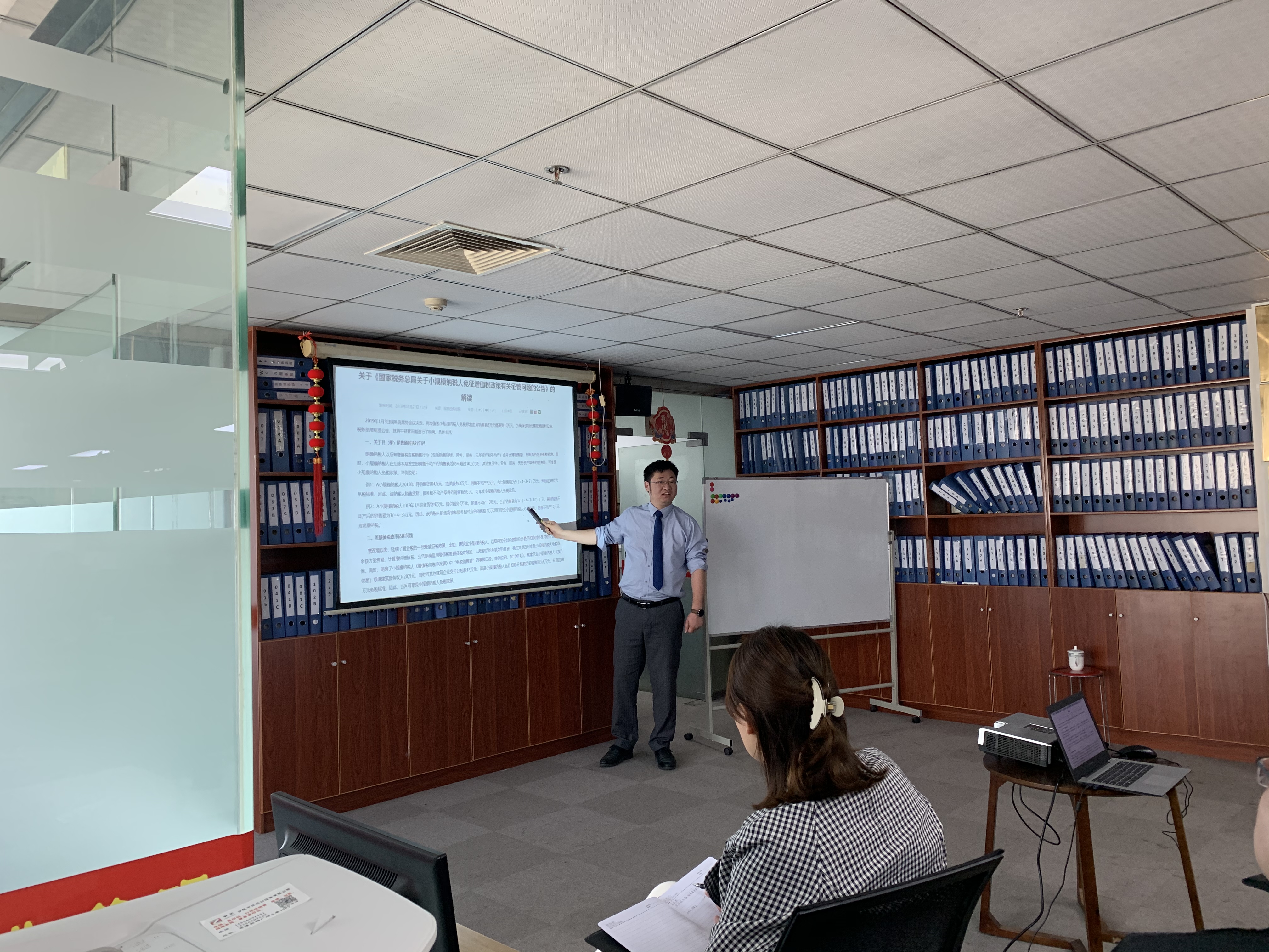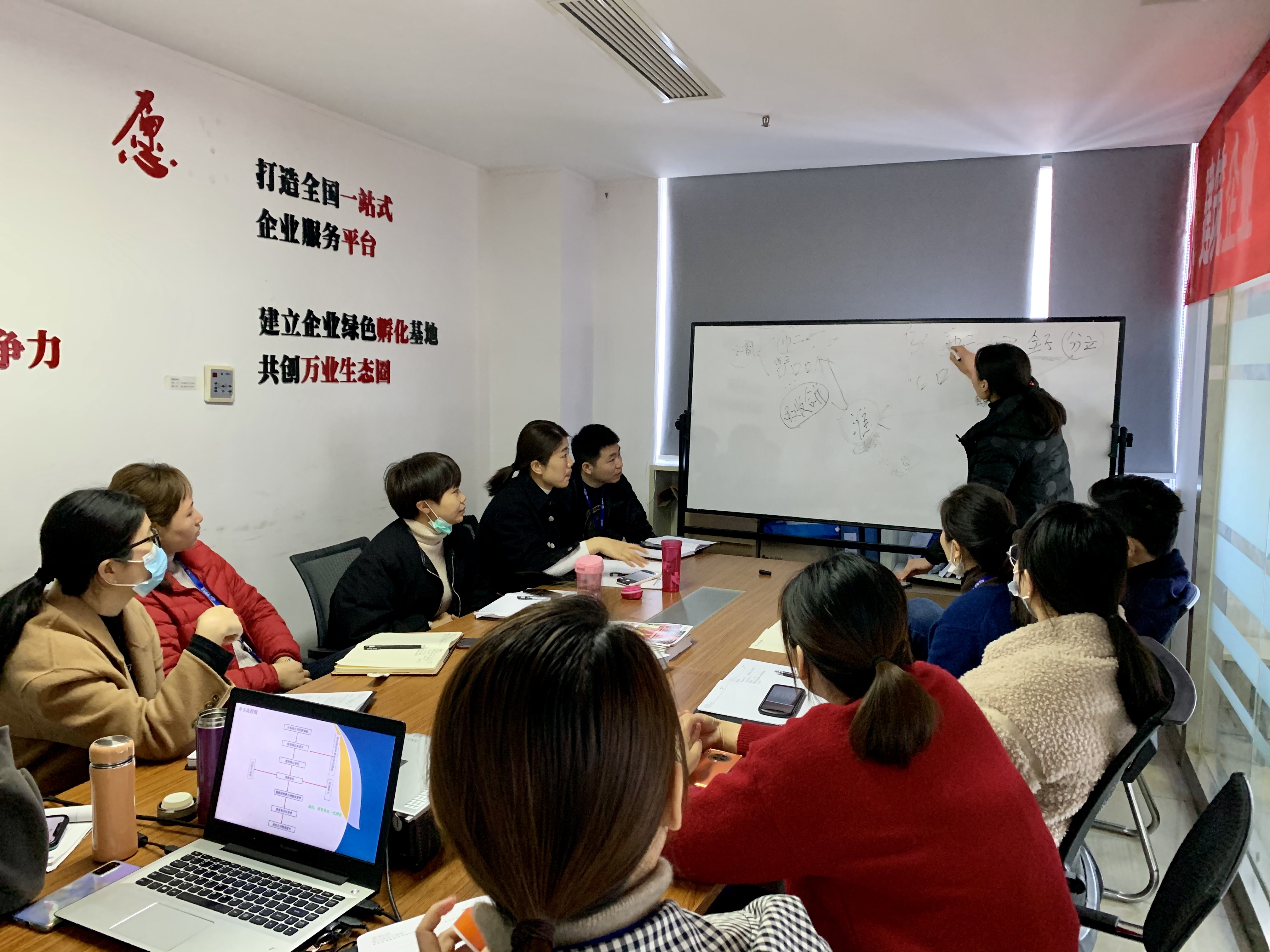 緊接著,下午,安徽萬業中天衡——王所、會計部——許主管為大家講解了“稅籌產品、稅籌服務、財務知識”“購買社保流程”,全員積極參與,用心傾聽。