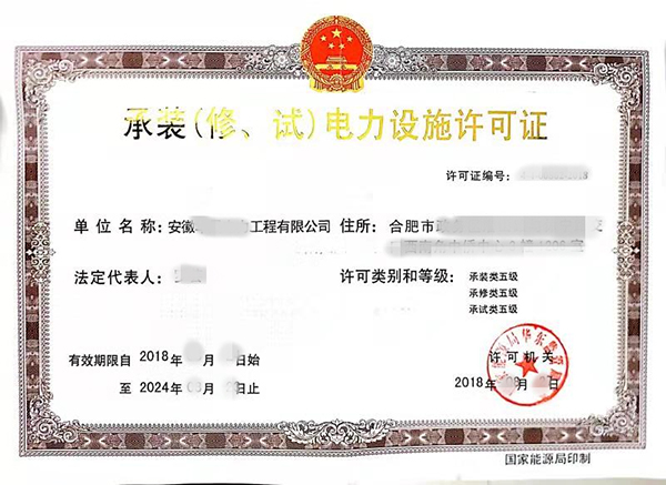 名稱:承裝(修、試)電力設(shè)施許可證(承裝五+承修五+承試五)