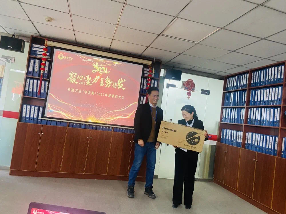 2月8號,安徽萬業(中天衡)在公司舉辦了2021年會盛典,并取得圓滿成功。我司黃總,中天衡王所參加此次活動并在會上致辭。 第一篇章 2020總結暨2021工作規劃 活動開始時,隨著黃總的登臺致辭,年會正式拉開了帷幕,首先黃總對公司2020年疫情之下逆勢而上取得的豐碩成果予以肯定,對長期以來支持萬業的合作伙伴、辛勤工作的全體員工,致以熱切的慰問和感謝并送上了新春的祝福。黃總表示公司將在2021年繼續加快企業多元化發展的步伐,為企業帶來新的發展契機。 隨后,各部門負責人開始了他們的年度匯報,總結2020年自己部門的不足與成果,暢談2021各團隊目標業績,發展使命。 第二篇章 表彰大會與年終獎頒發 接著,迎來了最令人激動人心的年終獎頒發環節,在眾人期待的目光中,黃總向各位員工表現派發年終獎勵,這是企業對大家誠摯的祝福,也是對全體員工的工作成績的認可。 第三篇章 抽獎 年終獎的頒發,慷概激昂、振奮人心,全體員工歡聲笑語,為人們呈現出新春的活力與美好。同時,中間穿插的抽獎環節更是把年會晚宴的現場氣氛推向了最高潮,松下吸塵器、黛珂水乳套裝、三明治機等重磅好禮一一送出,激勵大家奮發向上。 律回春暉漸,萬象始更新
